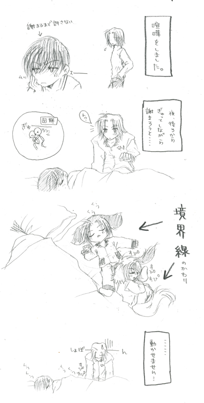 尻尾はふりふりしてるのに瞳は泣き出しそうなモコにロコは小さく溜息を落としてモコが持ってきた毛布を銜えた。そうして、ソファの上にひらりと乗る。